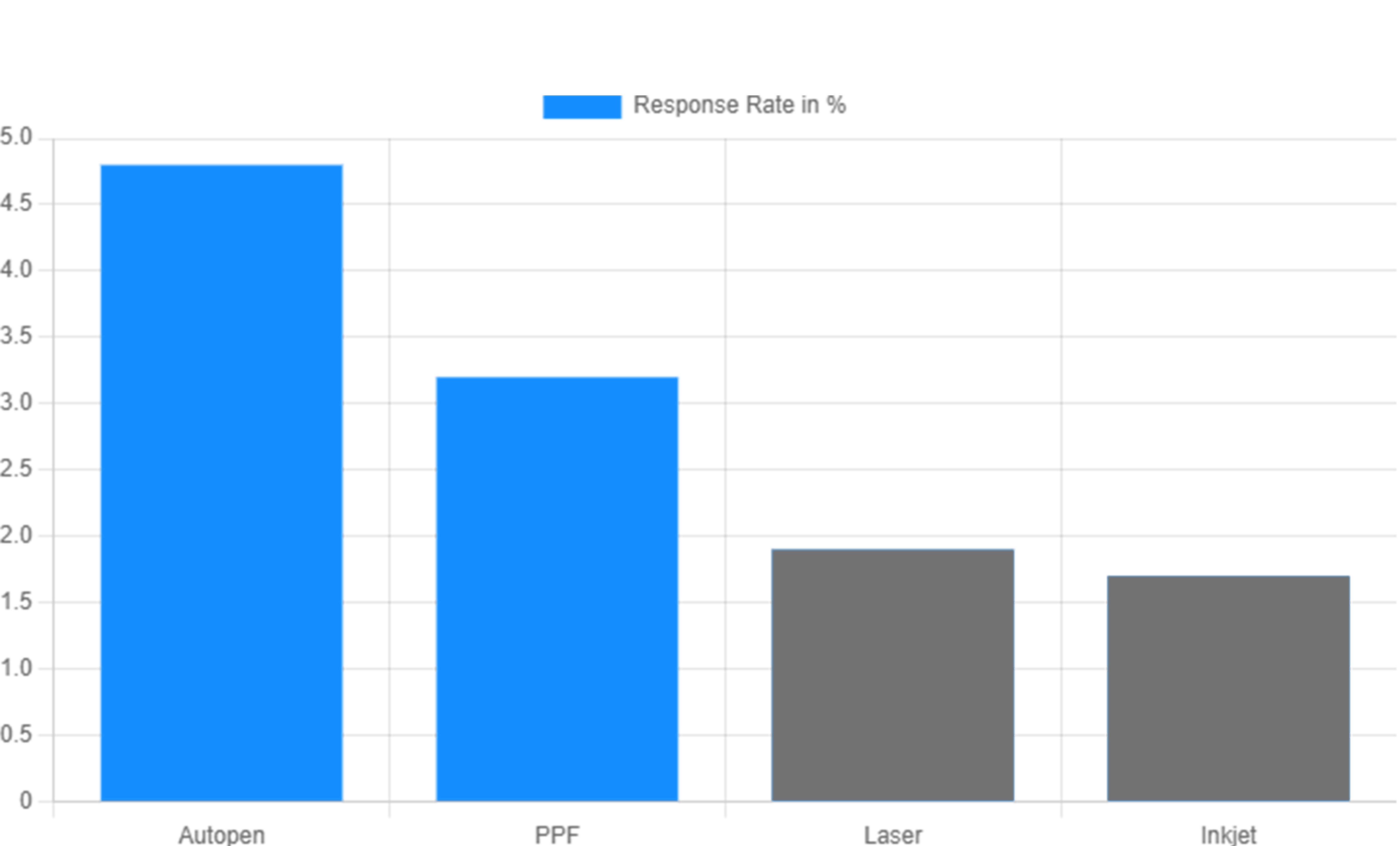 Using both PPF and Autopen, we have seen a response rate of up to 4.8% on our mail pieces. This is a huge increase from the 1.5% industry standard.